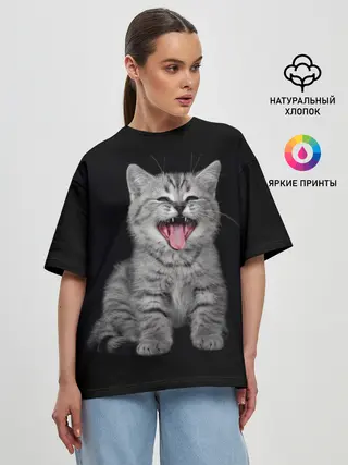Женская футболка оверсайз / Кричащий кот.
