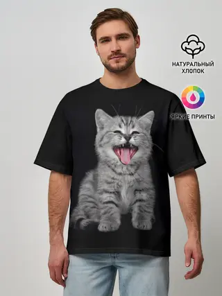 Мужская футболка оверсайз / Кричащий кот.