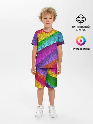 Детская пижама с шортами / Яркая мозаика радуга диагональ