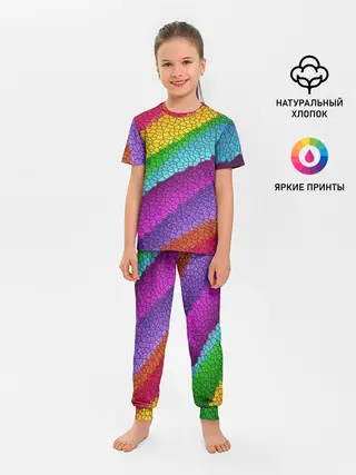 Детская пижама с брюками / Яркая мозаика радуга диагональ
