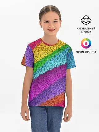 Детская базовая футболка / Яркая мозаика радуга диагональ
