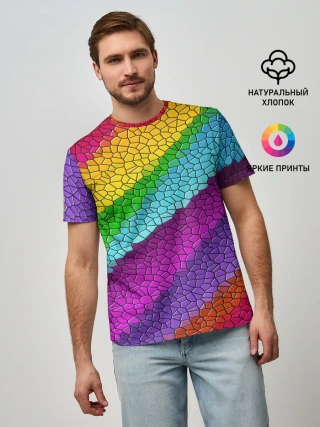 Мужская базовая футболка / Яркая мозаика радуга диагональ