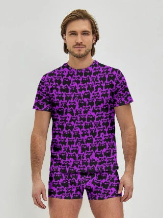Мужские трусы с футболкой / Неоновые коты
