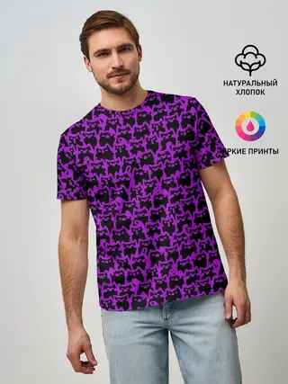 Мужская футболка оверсайз / Неоновые коты