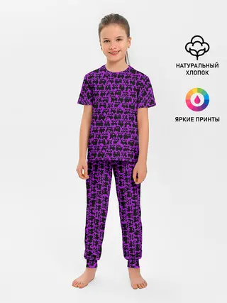 Детская пижама с брюками / Неоновые коты