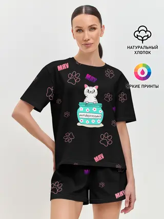 Женская пижама с шортами / Котик-антидепрессант