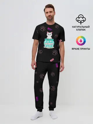 Мужская пижама с брюками / Котик-антидепрессант