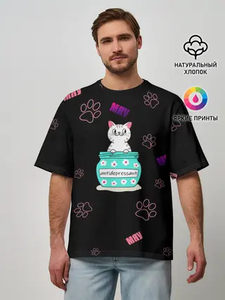 Мужская футболка оверсайз / Котик-антидепрессант