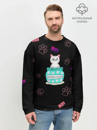 Мужской свитшот базовый / Котик-антидепрессант