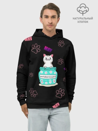 Худи мужской база хлопок / Котик-антидепрессант
