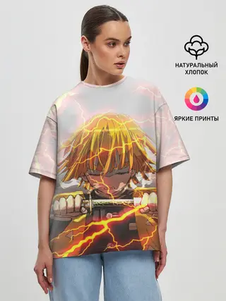 Женская футболка оверсайз / Kimetsu no yaiba достает меч