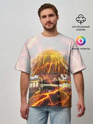 Мужская футболка оверсайз / Kimetsu no yaiba достает меч