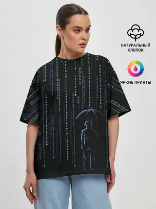 Женская футболка оверсайз / Двоичный дождь, матрица