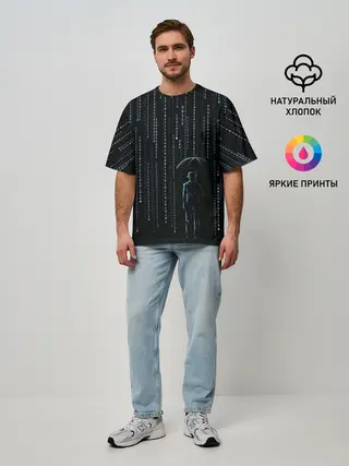 Мужская футболка оверсайз / Двоичный дождь, матрица