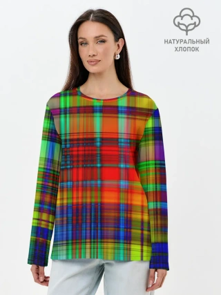 Лонгслив женский. Хлопок / Неоновая сетка