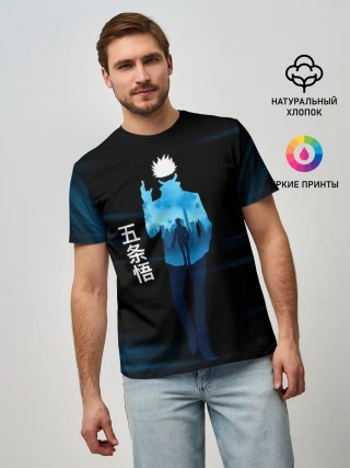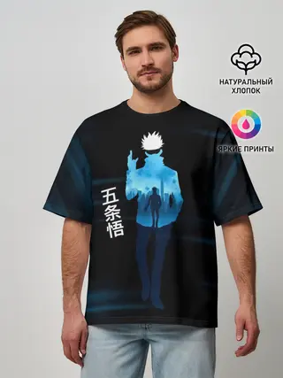 Мужская футболка оверсайз / Силуэт Сатору Годжо - Магическая битва