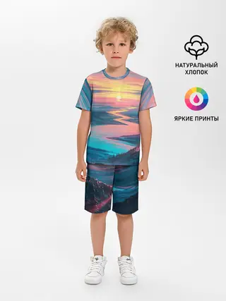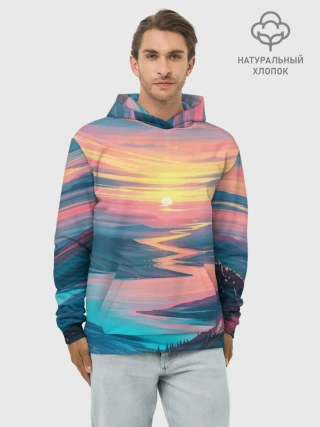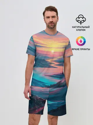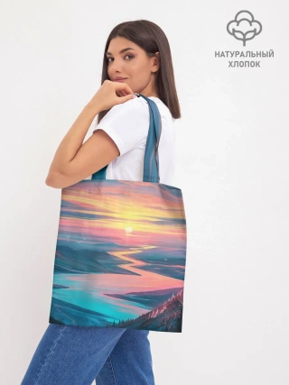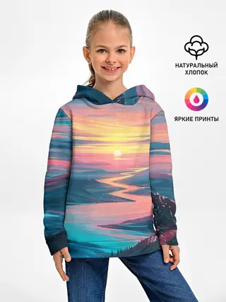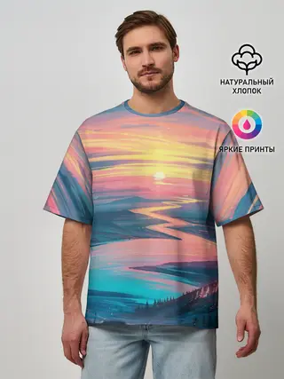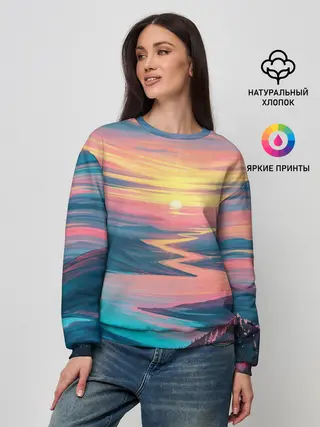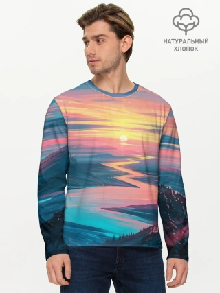 Лонгслив женский. Хлопок / Извилистая река закат природа