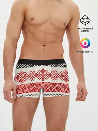 Трусы для мальчиков / Славянский узор красно-черный