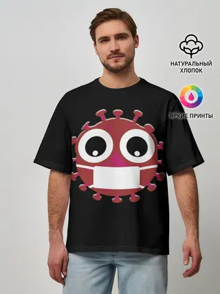 Мужская футболка оверсайз / Вирус в маске