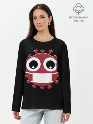 Лонгслив женский. Хлопок / Вирус в маске