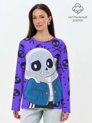 Лонгслив женский. Хлопок / Санс | Undertale