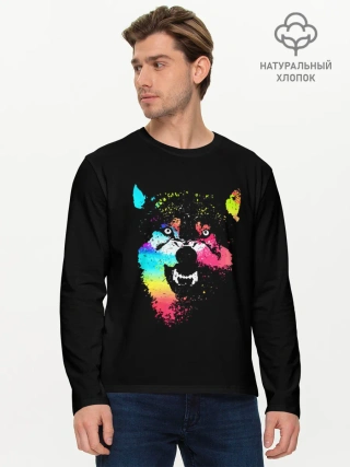 Мужской лонгслив базовый / Неоновый свирепый волк