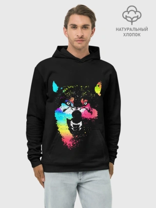 Худи мужской база хлопок / Неоновый свирепый волк