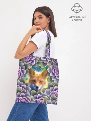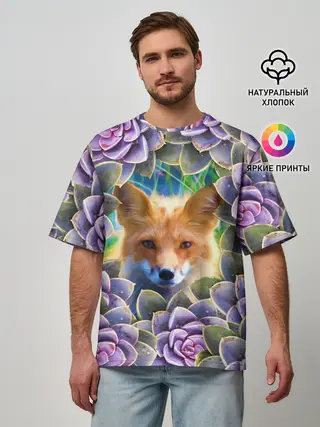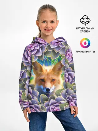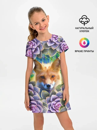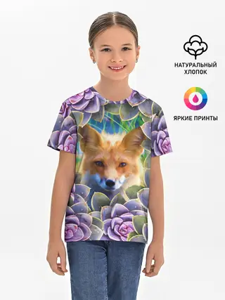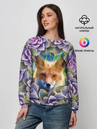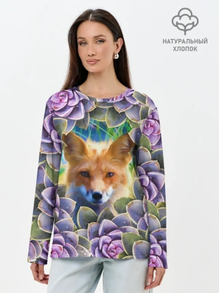 Лонгслив женский. Хлопок / Лиса среди цветов