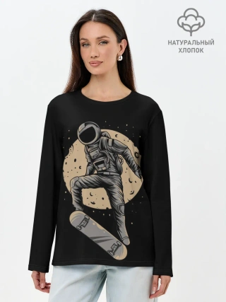 Лонгслив женский. Хлопок / Космический Скейтер
