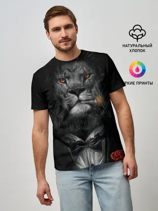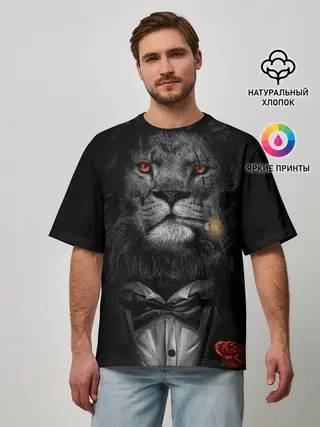 Мужская футболка оверсайз / Лев в смокинге