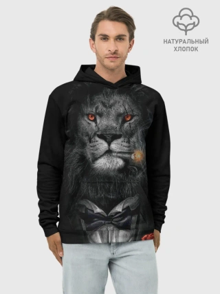 Худи мужской база хлопок / Лев в смокинге