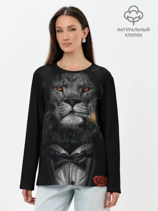 Лонгслив женский. Хлопок / Лев в смокинге