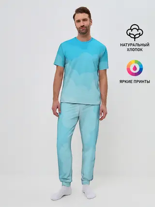 Мужская пижама с брюками / Голубые облака