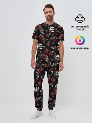 Мужская пижама с брюками / Черепа и розы