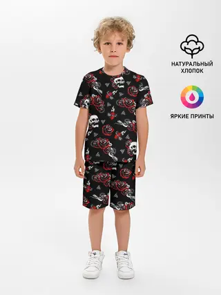 Детская пижама с шортами / Черепа и розы
