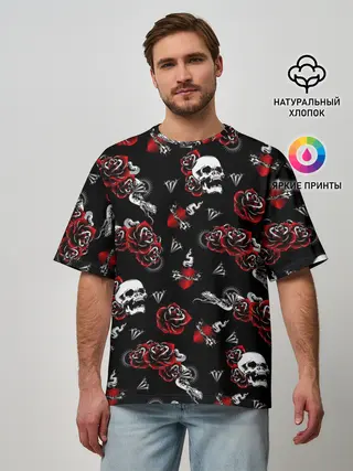 Мужская футболка оверсайз / Черепа и розы