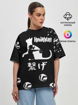 Женская футболка оверсайз / Старшая Некома коты Haikyuu!!
