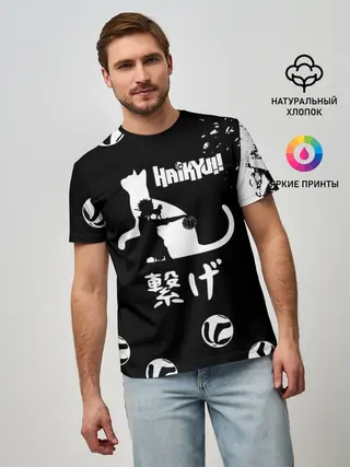 Мужская футболка оверсайз / Старшая Некома коты Haikyuu!!