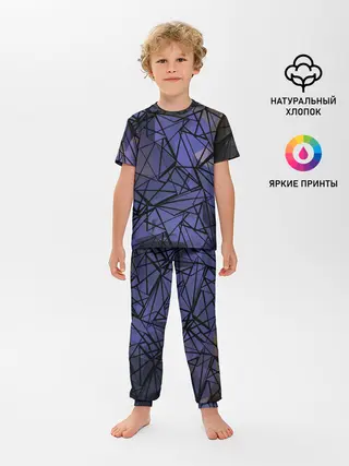 Детская пижама с брюками / Синий-бежевый абстрактный узор