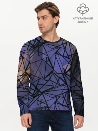 Мужской лонгслив базовый / Синий-бежевый абстрактный узор