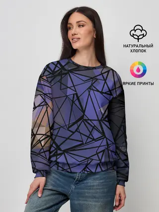 Женский свитшот / Синий-бежевый абстрактный узор