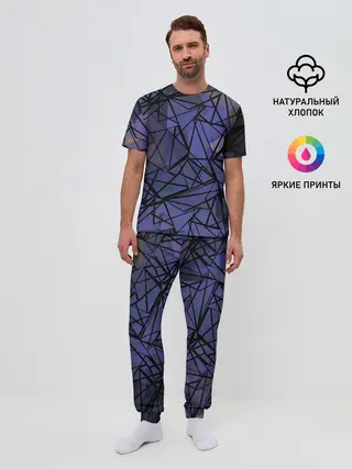 Мужская пижама с брюками / Синий-бежевый абстрактный узор