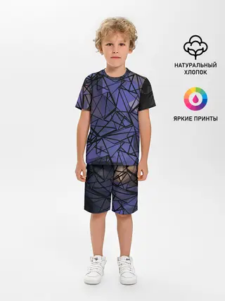 Детская пижама с шортами / Синий-бежевый абстрактный узор