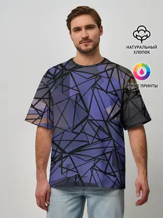 Мужская футболка оверсайз / Синий-бежевый абстрактный узор