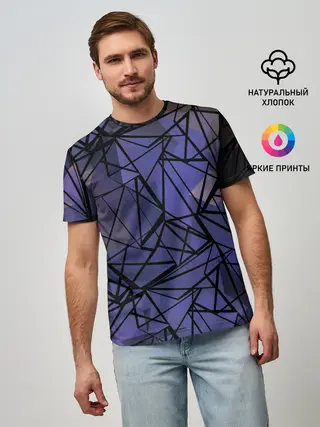 Мужская базовая футболка / Синий-бежевый абстрактный узор