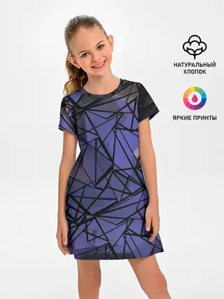 Детское платье / Синий-бежевый абстрактный узор