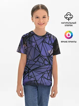 Детская базовая футболка / Синий-бежевый абстрактный узор