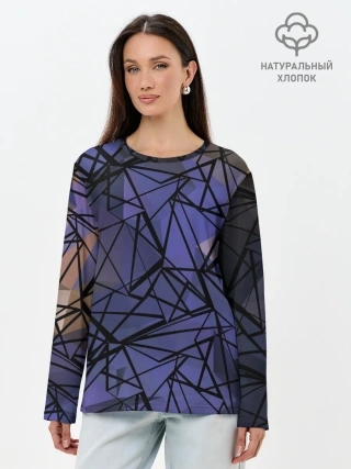 Лонгслив женский. Хлопок / Синий-бежевый абстрактный узор