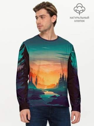 Мужской лонгслив базовый / Закат Лес