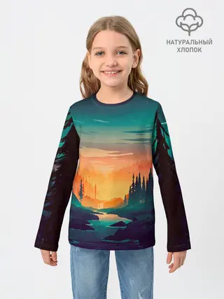 Детский лонгслив / Закат Лес